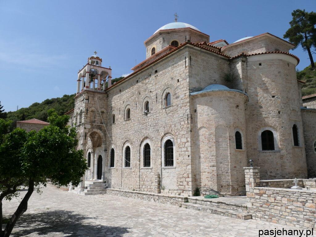Pogoda trochę się popsuła. Jest bardziej pochmurno, ale nadal ciepło. Planujemy udać się na wschodnią część wyspy. Mijamy Samos i docieramy do żeńskiego klasztoru Zoodochou skąd rozciąga się widok na Moutria Beach.