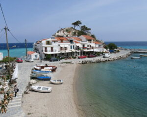 Samos to niewielka wyspa na Morzu Egejskim. Ze wschodniego wybrzeża widać Turcję. Samos – to miejsce narodzin Pitagorasa, filozofa Epikura oraz astronoma Arystacha.