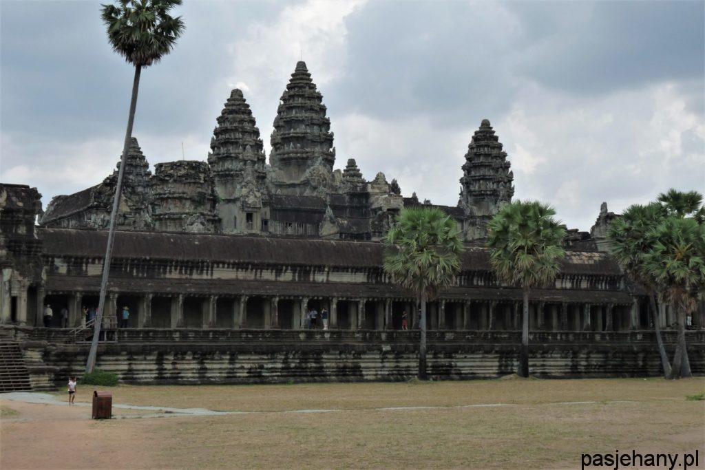 Jest już południe – kierujemy się zatem do Angkor Wat stworzone w XII w. przez cywilizację Khmerską. Miało to być odwzorowanie raju na ziemi. Wybudowany przez Surjawarmana został poświęcony bóstwu Trimurti. Po śmierci króla świątynia stała się jego mauzoleum. Rewolucja religijna, jaka miała miejsce w VII-XII w. spowodowała, ze imperium Khmerów przeszło na buddyzm a Angkor Wat zostało przekształcone z sanktuarium Wisznu w buddyjski wat – czyli klasztor. Kompleks zajmuje obszar 1,5 km 2. Obwód wytycza szeroka fosa.