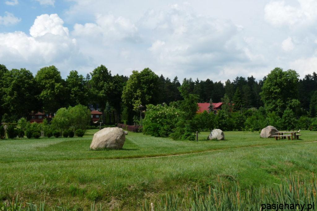 W centrum parku znajdują się stawy, kładki, park megalitów, ciekawy zegar