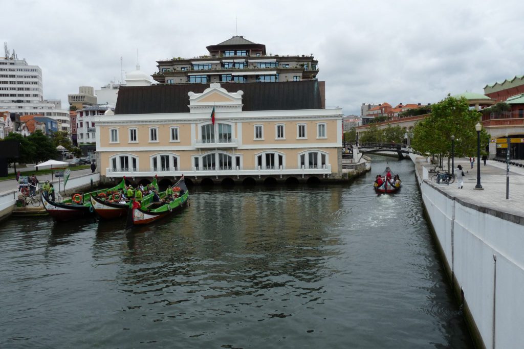 Aveiro „przyciągające turystów rozlewiskami rzeki Vouga oraz samą zabudową, uroczo rozłożoną nad kanałami niczym w Wenecji, Amsterdamie czy Bydgoszczy.”(cytat z przewodnika). To prawda. Urocze miasto. Do Amsterdamu jednak jest mu bardzo, bardzo daleko. Jako urozmaicenie – na moście zamiast kłódek – wiesza się kolorowe wstążeczki.
