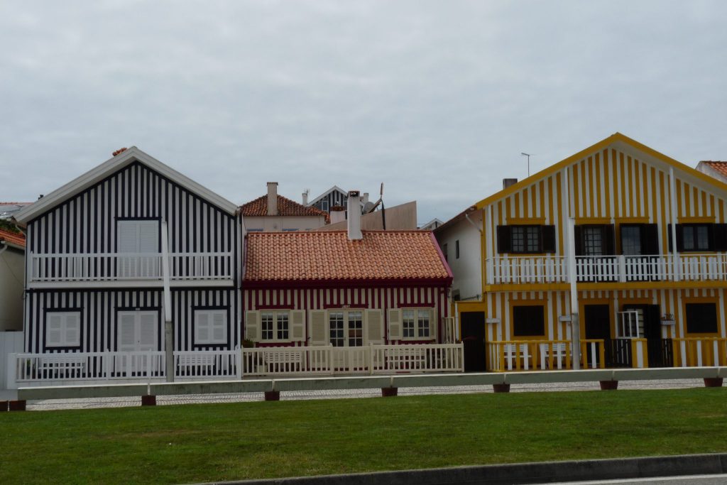 Spragnieni widoku oceanu – kierujemy się jeszcze do Costa Nova. Stoją tu rybackie chaty (teraz już wynajmowane chyba tylko turystom) pomalowane w charakterystyczne pasy. Na szczęście – pogoda poprawiła się.