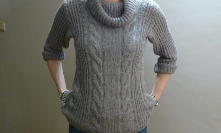 Sweterek dla mojej córeczki. Wełna – Drops Nord. Bardzo wydajna. Robótkę prułam wiele razy – a włóczka o dziwo zachowała swój delikatny włosek. Całość robiłam na drutach nr 5. Nie polecam jednak łączenia wzoru angielskiego z warkoczami. Warkocze bowiem ściągają robótkę, a wzór angielski – w przeciwieństwie – wyciąga dzianinę.